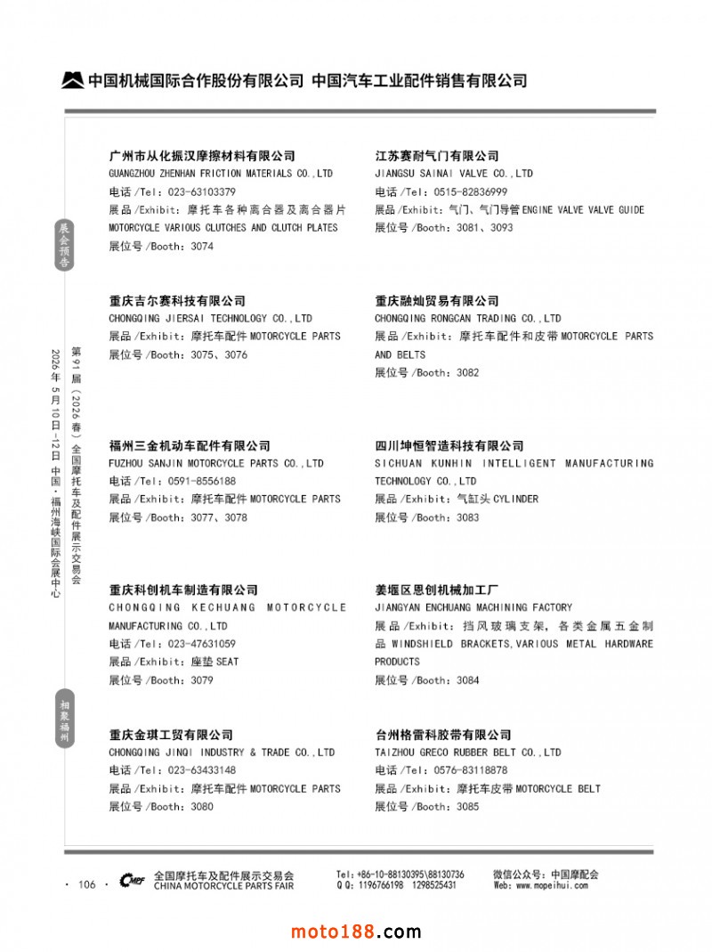 內(nèi)106 第90屆(2025秋)全國摩托車及配件展示交易會-廣州站參展企業(yè)信息
