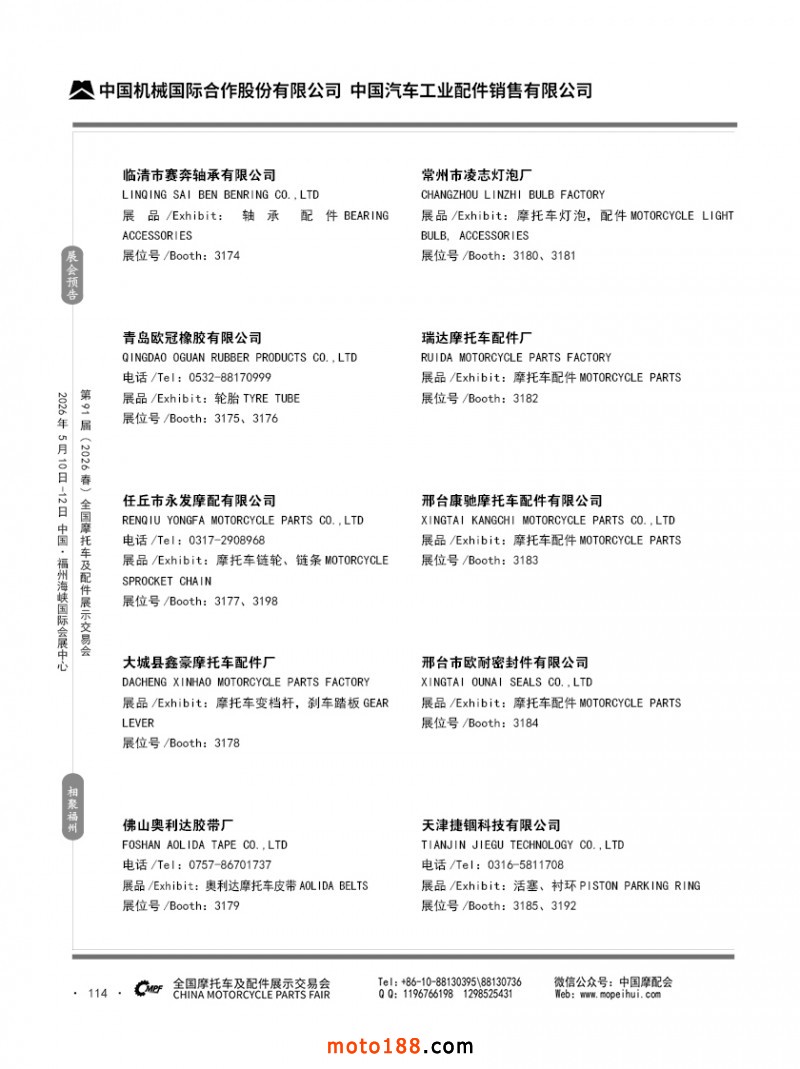 內(nèi)114 第90屆(2025秋)全國摩托車及配件展示交易會-廣州站參展企業(yè)信息
