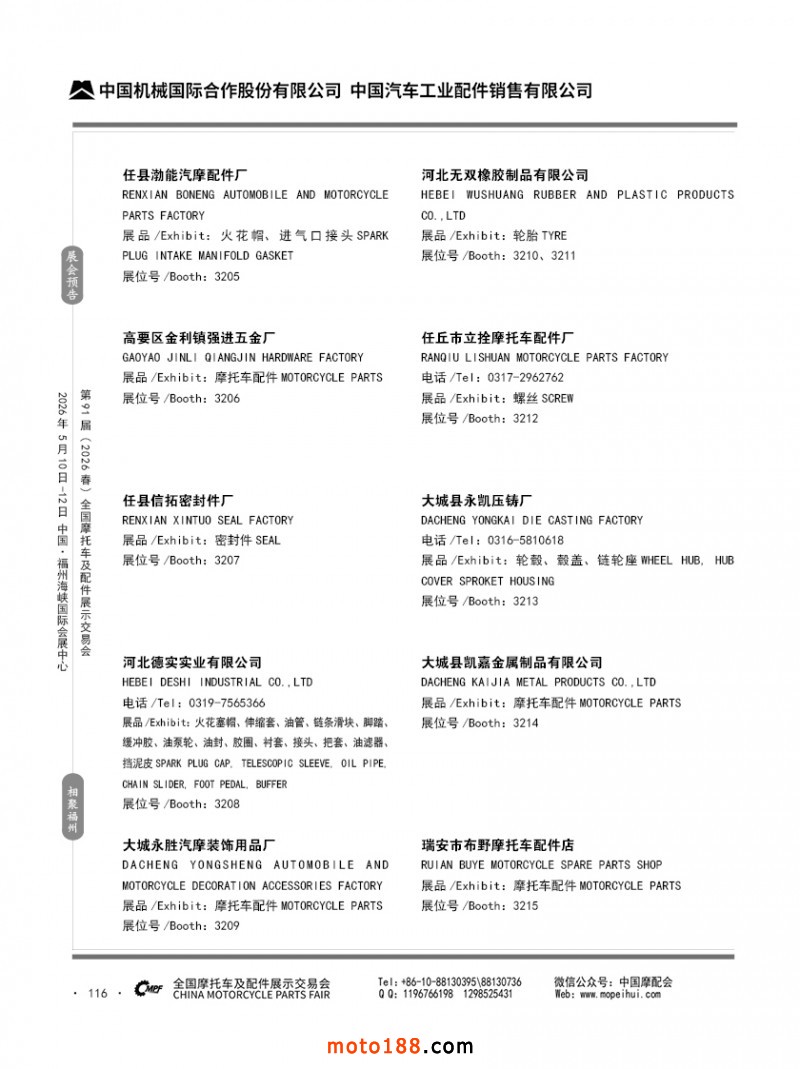 內(nèi)116 第90屆(2025秋)全國(guó)摩托車及配件展示交易會(huì)-廣州站參展企業(yè)信息