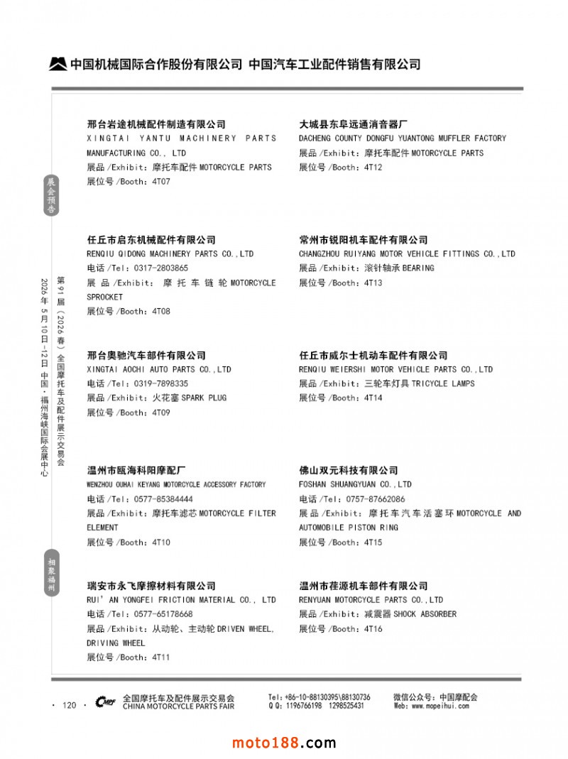 內(nèi)120 第90屆(2025秋)全國(guó)摩托車(chē)及配件展示交易會(huì)-廣州站參展企業(yè)信息