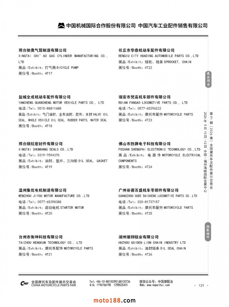內(nèi)121 第90屆(2025秋)全國摩托車及配件展示交易會(huì)-廣州站參展企業(yè)信息