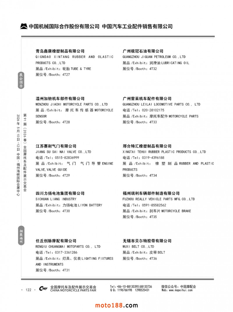 內(nèi)122 第90屆(2025秋)全國(guó)摩托車及配件展示交易會(huì)-廣州站參展企業(yè)信息