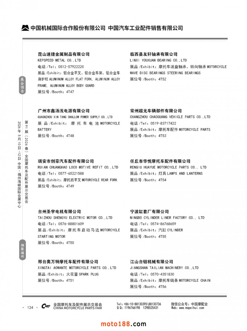 內(nèi)124 第90屆(2025秋)全國摩托車及配件展示交易會(huì)-廣州站參展企業(yè)信息