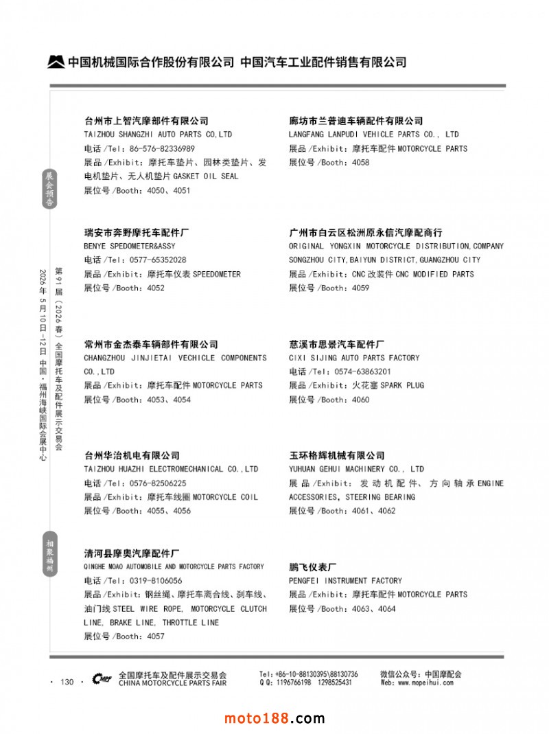 內(nèi)130 第90屆(2025秋)全國(guó)摩托車及配件展示交易會(huì)-廣州站參展企業(yè)信息