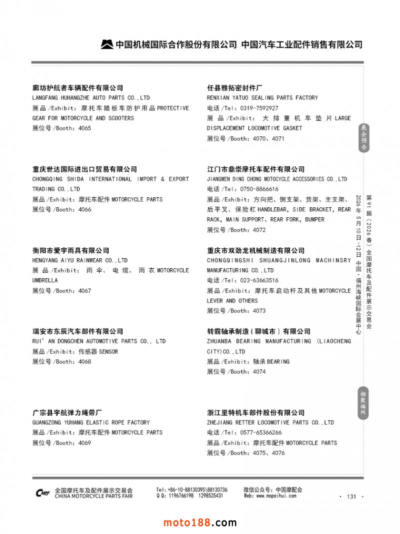 內(nèi)131 第90屆(2025秋)全國摩托車及配件展示交易會-廣州站參展企業(yè)信息