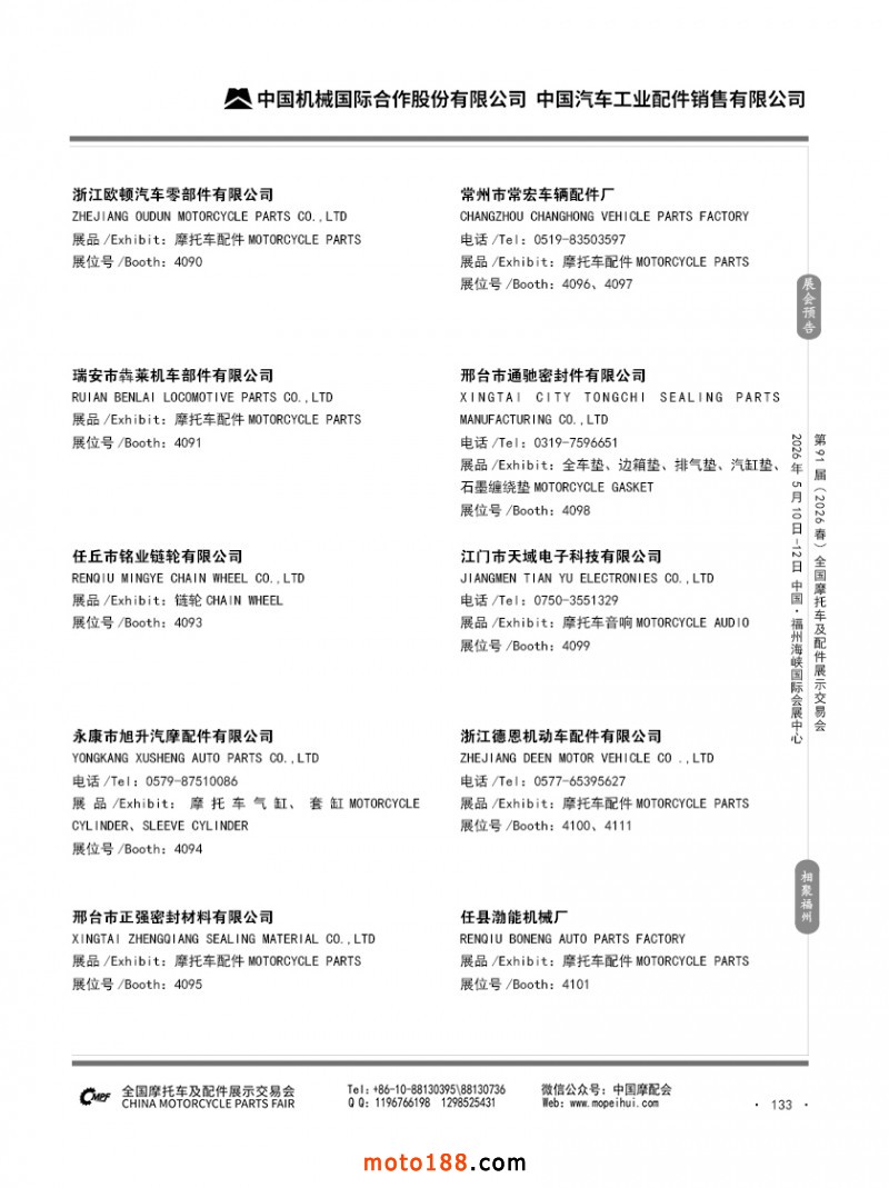 內(nèi)133 第90屆(2025秋)全國摩托車及配件展示交易會-廣州站參展企業(yè)信息