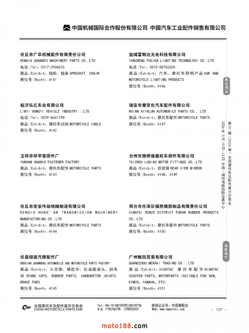 內(nèi)137 第90屆(2025秋)全國摩托車及配件展示交易會-廣州站參展企業(yè)信息