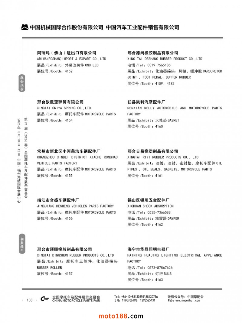 內(nèi)138 第90屆(2025秋)全國(guó)摩托車及配件展示交易會(huì)-廣州站參展企業(yè)信息