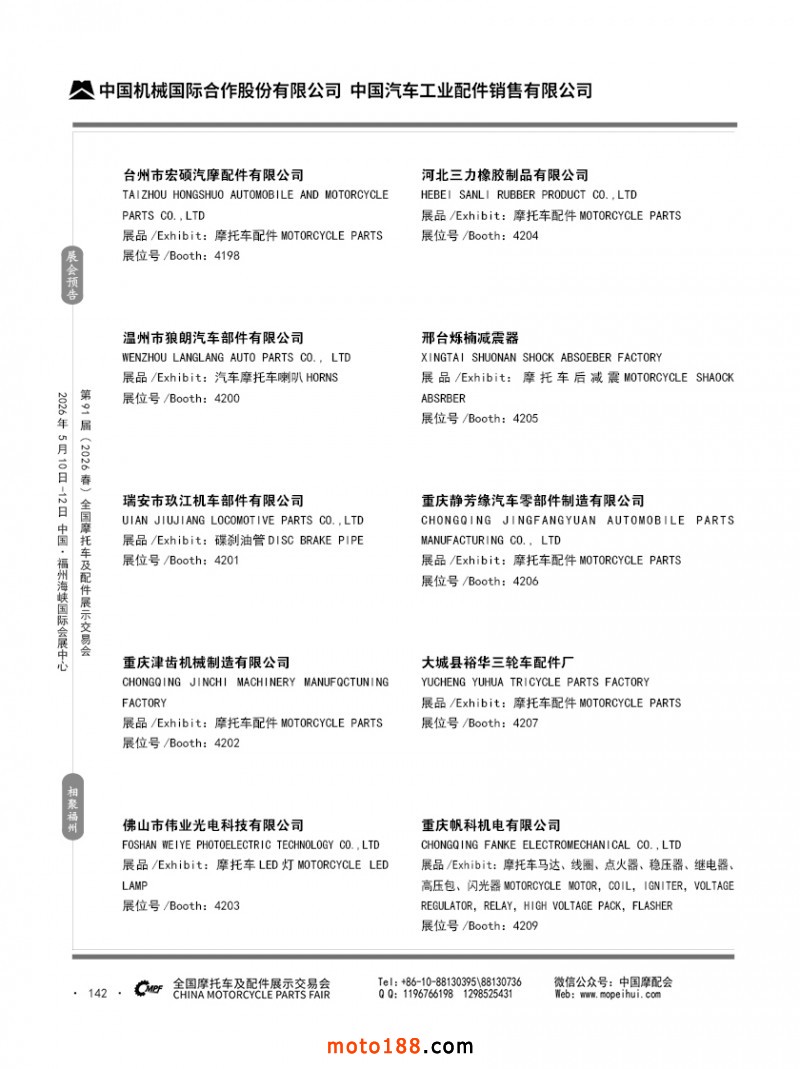 內(nèi)142 第90屆(2025秋)全國摩托車及配件展示交易會-廣州站參展企業(yè)信息