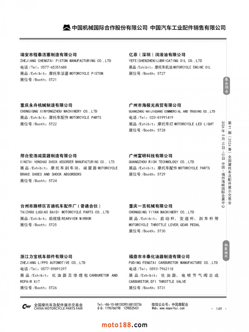 內(nèi)149 第90屆(2025秋)全國(guó)摩托車(chē)及配件展示交易會(huì)-廣州站參展企業(yè)信息