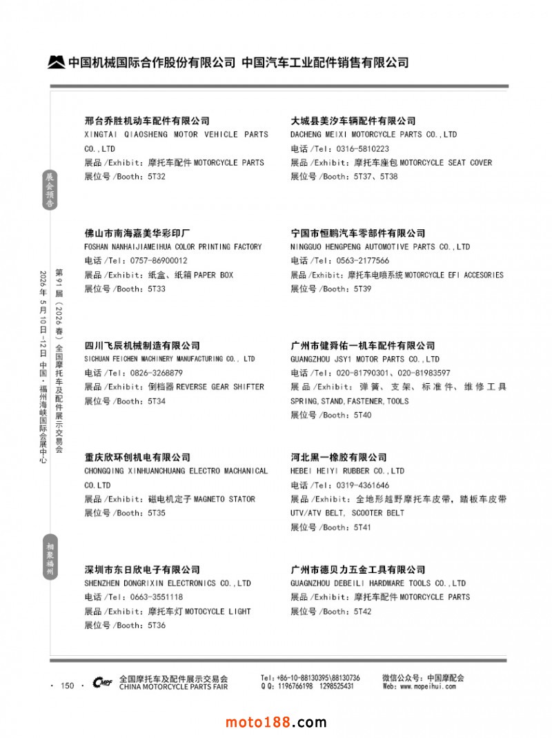 內(nèi)150 第90屆(2025秋)全國(guó)摩托車及配件展示交易會(huì)-廣州站參展企業(yè)信息