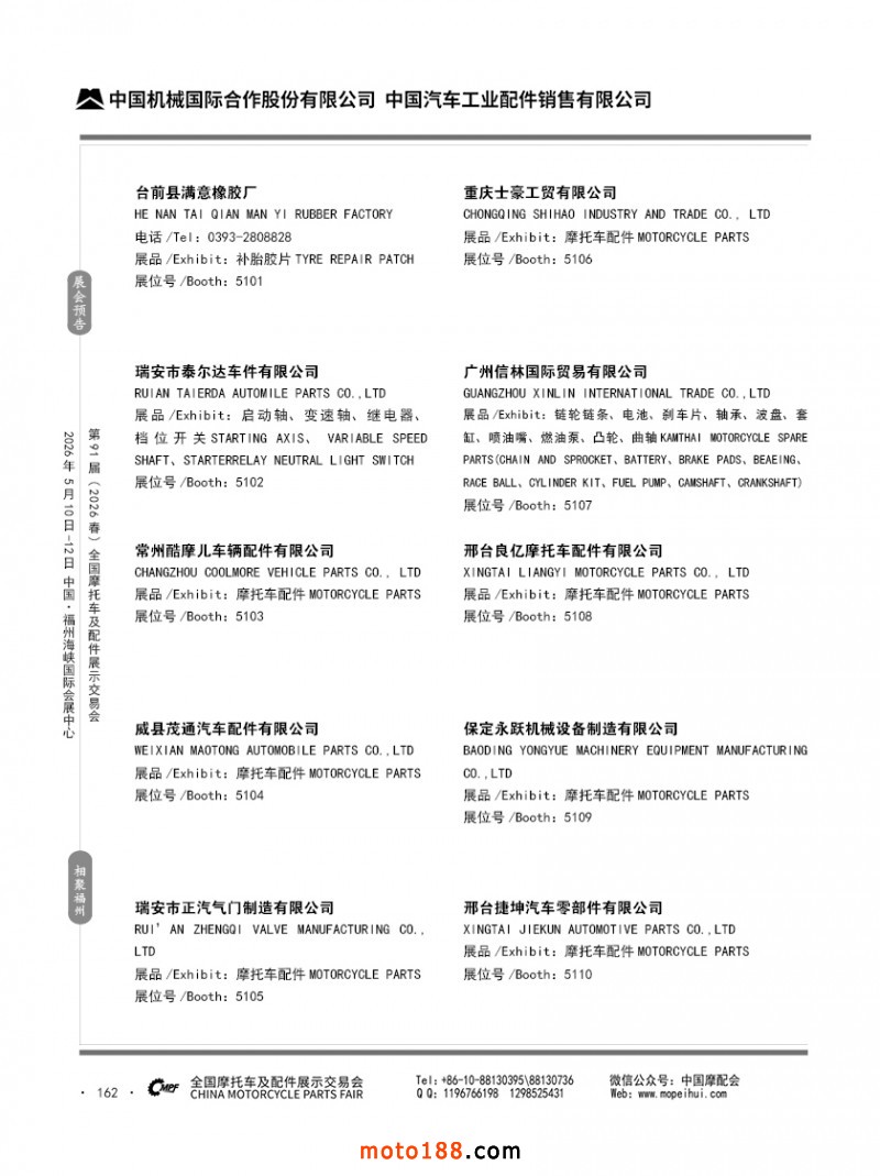 內(nèi)162 第90屆(2025秋)全國摩托車及配件展示交易會-廣州站參展企業(yè)信息