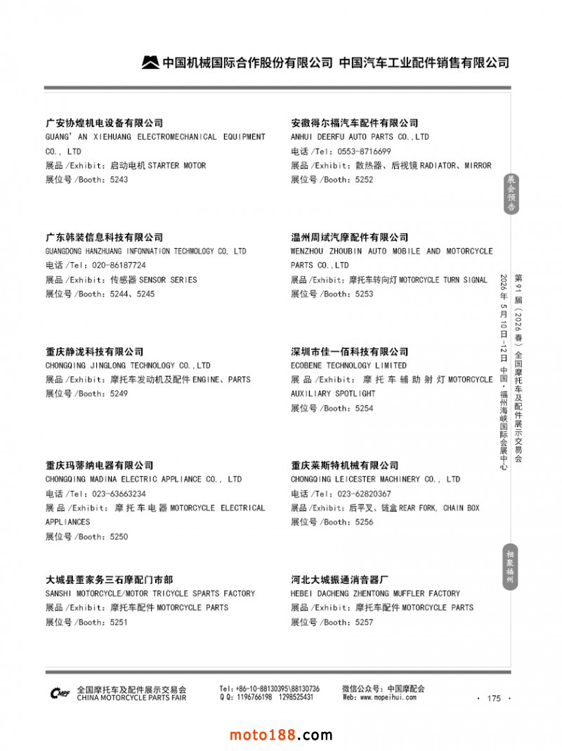 內(nèi)175 第90屆(2025秋)全國摩托車及配件展示交易會-廣州站參展企業(yè)信息