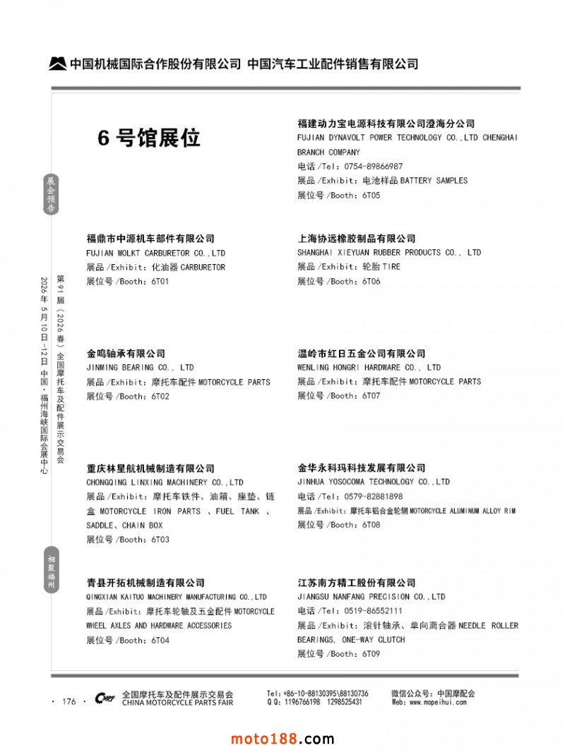 內(nèi)176 第90屆(2025秋)全國(guó)摩托車(chē)及配件展示交易會(huì)-廣州站參展企業(yè)信息