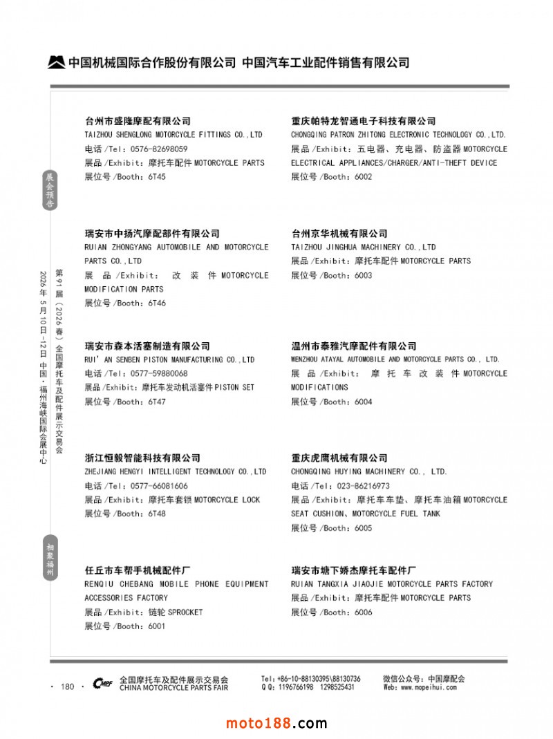 內(nèi)180 第90屆(2025秋)全國摩托車及配件展示交易會-廣州站參展企業(yè)信息