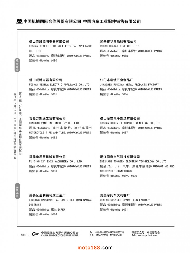 內188 第90屆(2025秋)全國摩托車及配件展示交易會-廣州站參展企業(yè)信息