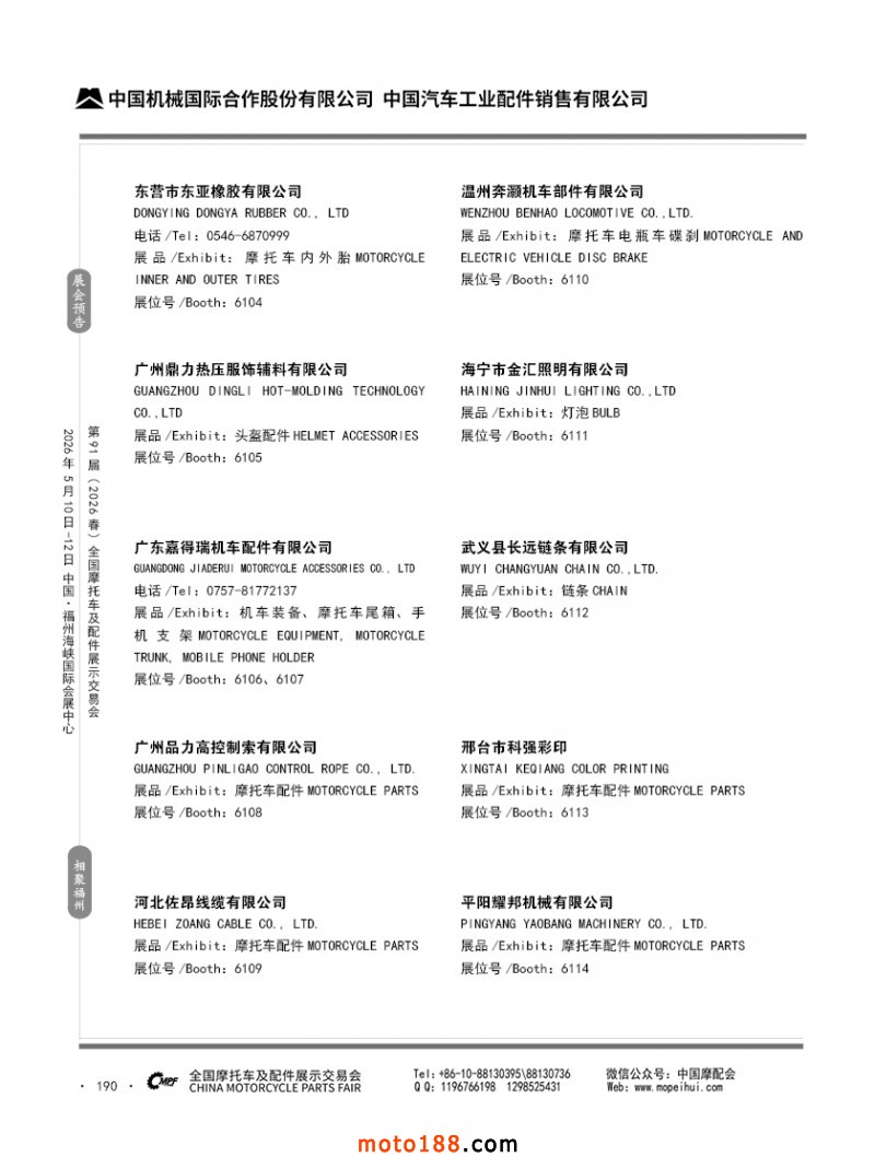 內190 第90屆(2025秋)全國摩托車及配件展示交易會-廣州站參展企業(yè)信息