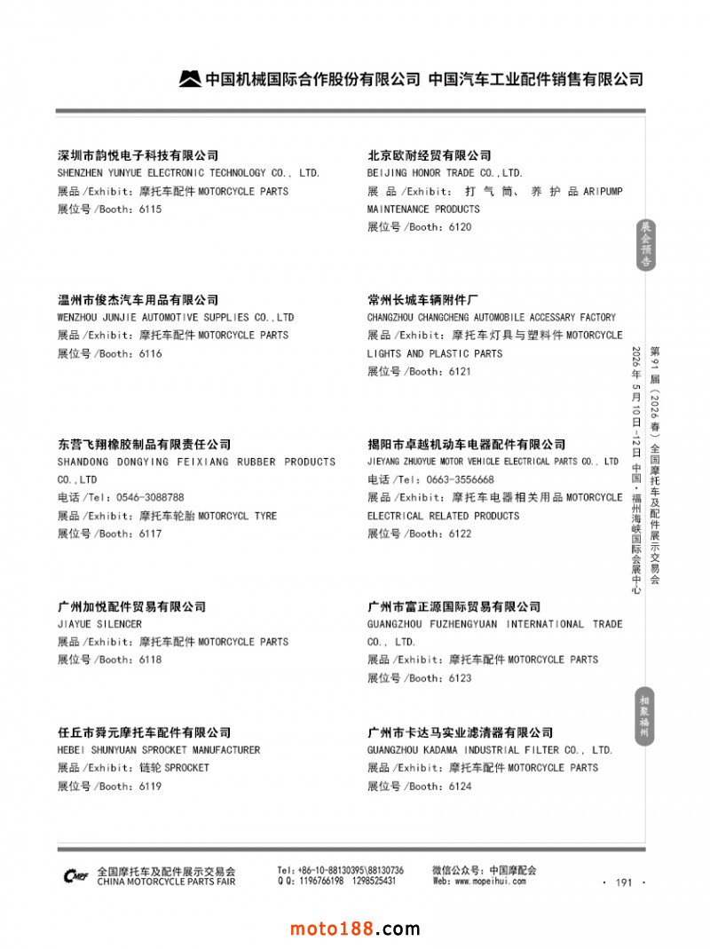 內(nèi)191 第90屆(2025秋)全國摩托車及配件展示交易會-廣州站參展企業(yè)信息