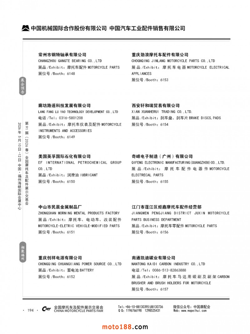 內(nèi)194 第90屆(2025秋)全國(guó)摩托車及配件展示交易會(huì)-廣州站參展企業(yè)信息