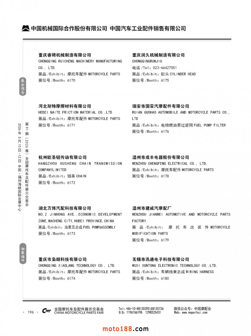 內(nèi)196 第90屆(2025秋)全國摩托車及配件展示交易會-廣州站參展企業(yè)信息