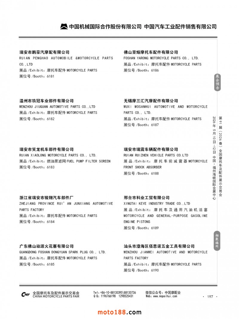 內(nèi)197 第90屆(2025秋)全國摩托車及配件展示交易會-廣州站參展企業(yè)信息