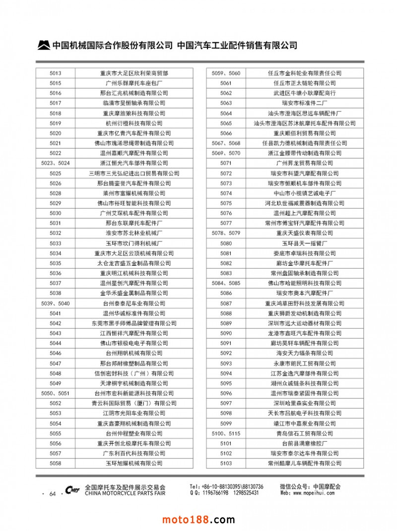 內(nèi)64 第90屆(2025秋)全國摩托車及配件展示交易會-廣州站參展單位名錄