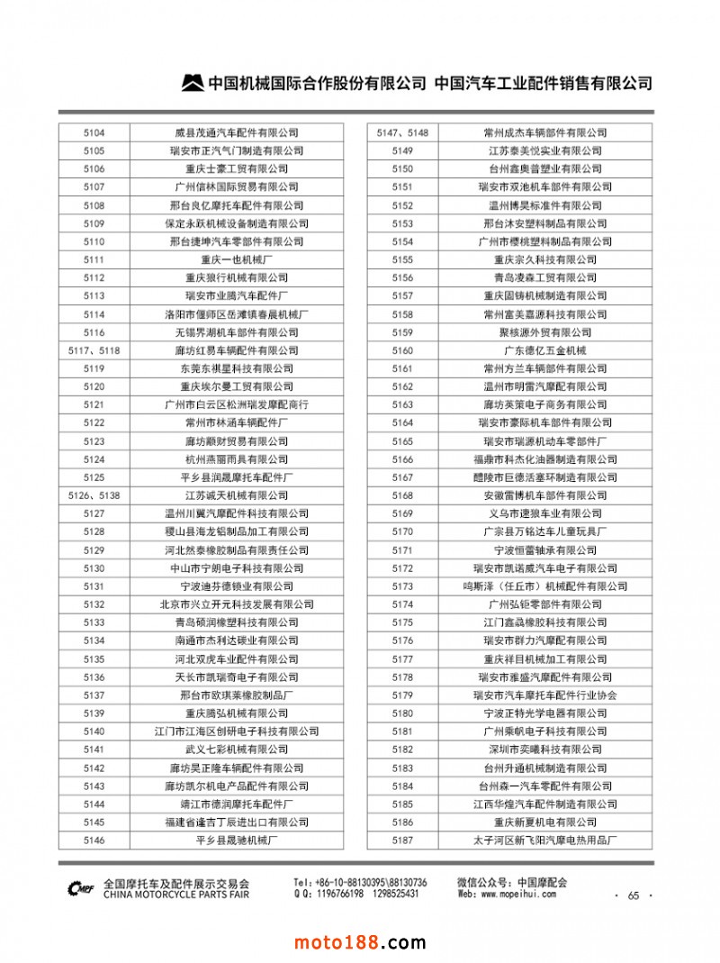 內(nèi)65 第90屆(2025秋)全國摩托車及配件展示交易會-廣州站參展單位名錄