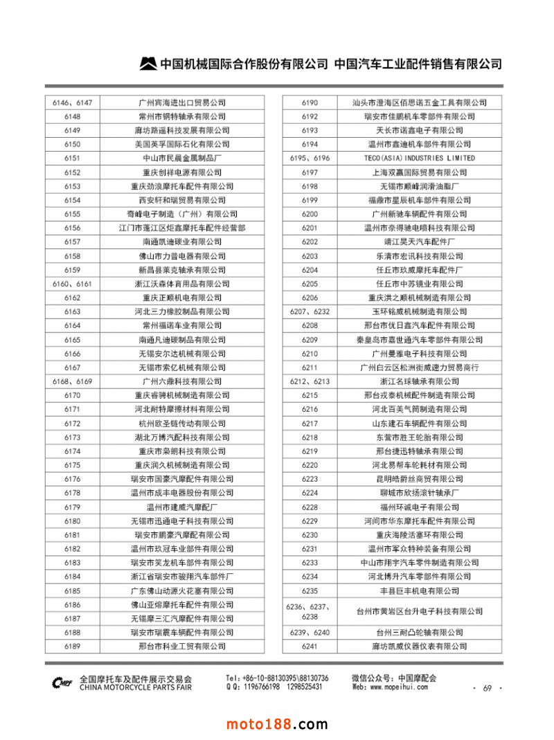 內(nèi)69 第90屆(2025秋)全國(guó)摩托車(chē)及配件展示交易會(huì)-廣州站參展單位名錄