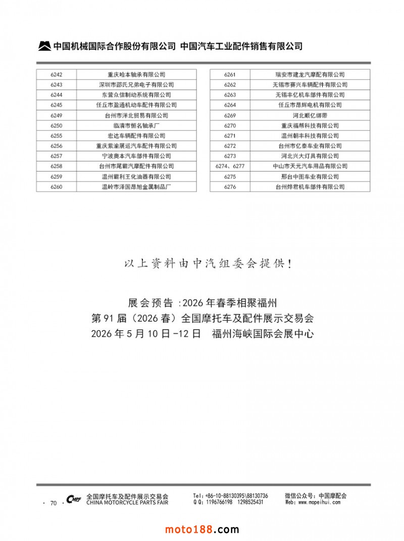 內(nèi)70 第90屆(2025秋)全國摩托車及配件展示交易會(huì)-廣州站參展單位名錄