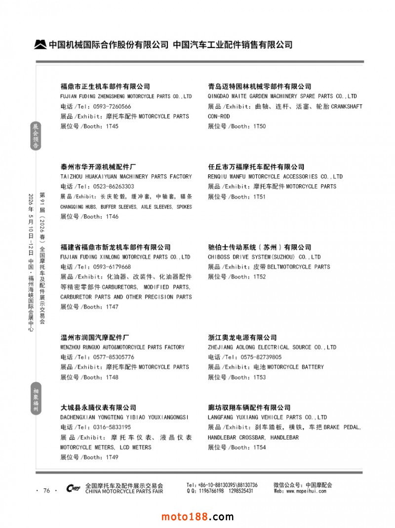 內(nèi)76 第90屆(2025秋)全國摩托車及配件展示交易會-廣州站參展企業(yè)信息