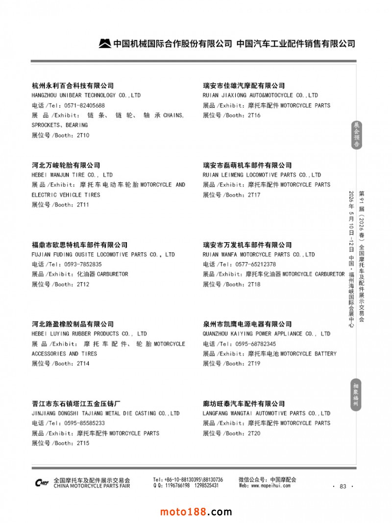 內(nèi)83 第90屆(2025秋)全國摩托車及配件展示交易會-廣州站參展企業(yè)信息