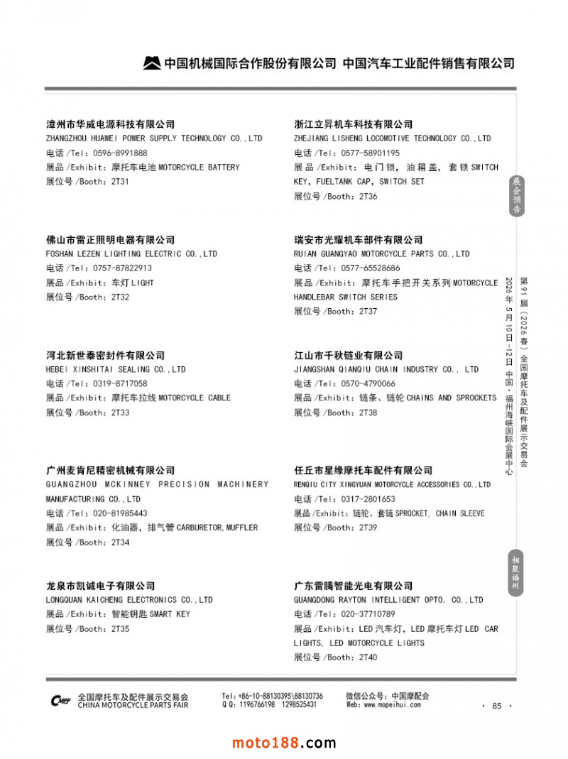 內(nèi)85 第90屆(2025秋)全國摩托車及配件展示交易會-廣州站參展企業(yè)信息