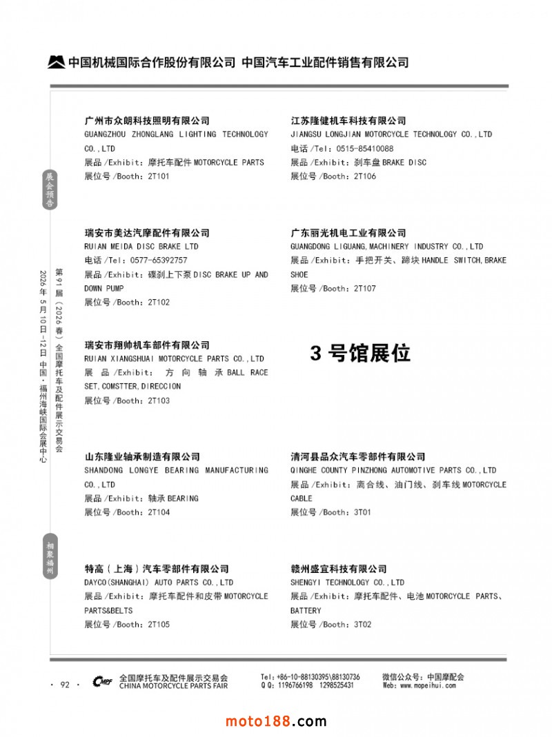 內(nèi)92 第90屆(2025秋)全國摩托車及配件展示交易會-廣州站參展企業(yè)信息