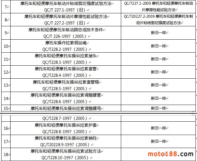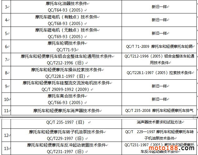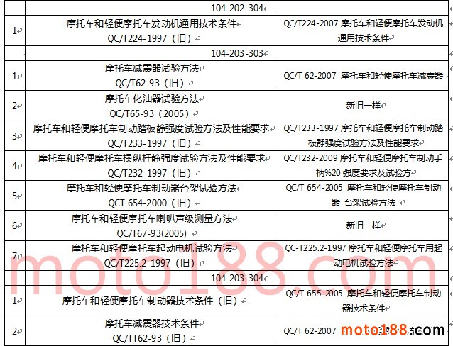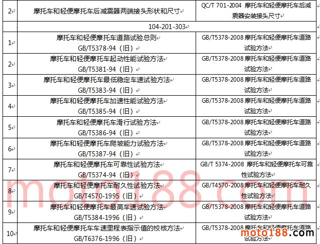 摩托車行業(yè)標(biāo)準(zhǔn)體系(二)