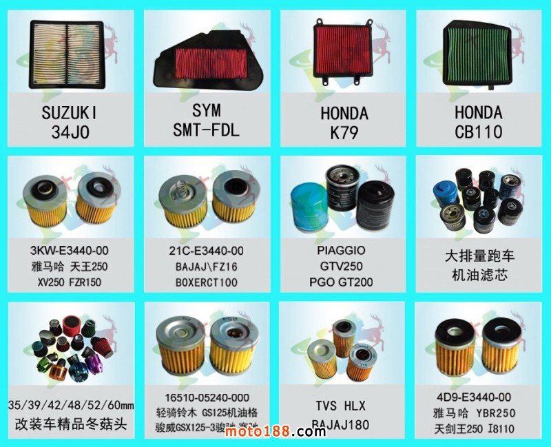 專業(yè)生產(chǎn)各種摩托車原廠空氣濾清器、機油濾清器、空濾器總成。