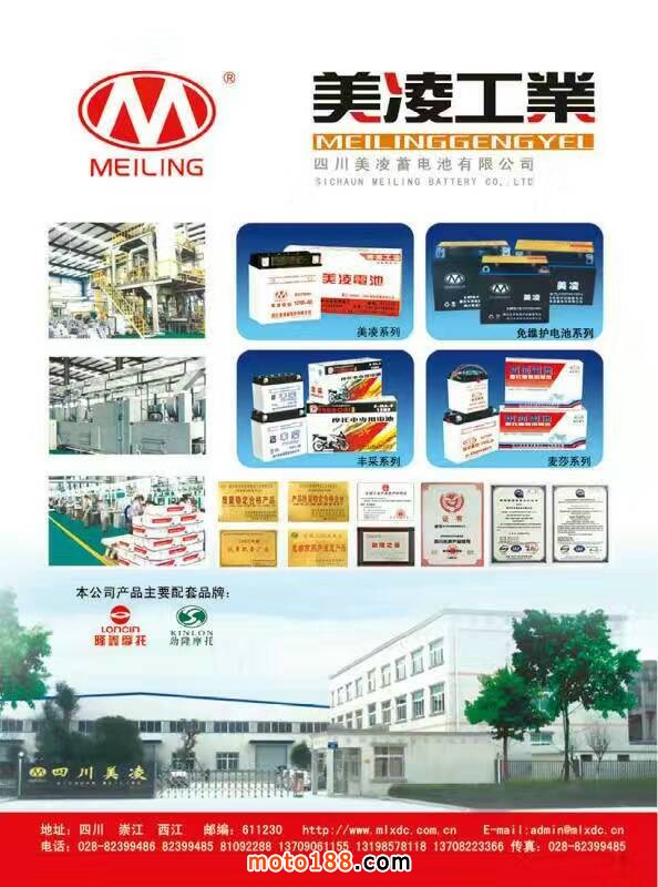 主導(dǎo)產(chǎn)品有“美凌”牌、“麥莎”牌、“豐采”牌、“精典”牌、“惠普”牌、“聚豐”牌、“川野”牌以及配套用“隆鑫”、“勁隆”、“新感覺”、出口銷售用摩托車鉛酸蓄電池。