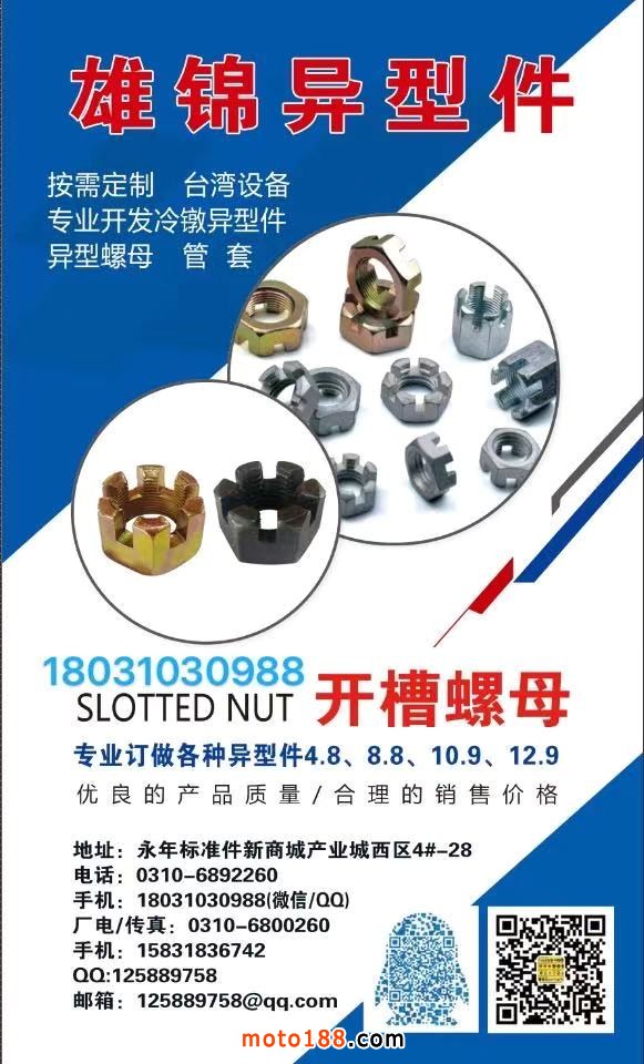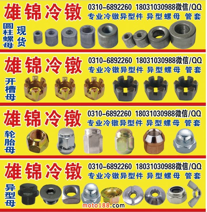 專業(yè)生產(chǎn)開槽螺母,圓柱螺母,圓螺母,圓形管套,輪胎螺母,輪胎螺母,焊接螺母,蓋形螺母,法蘭螺母,防松螺母等等。歡迎新老客戶來(lái)電咨詢!
