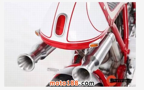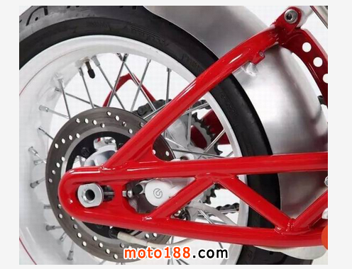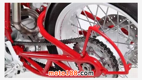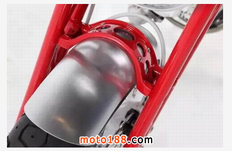我們知道,紅色和鋼管在杜卡迪中扮演重要角色,但在這臺(tái)定制車上,這些元素的含量比杜卡迪還多得多!大紅的鋼管滲透了Shifter的每個(gè)地方——不但是車架,還有副車架、后擺臂等。甚至就連前叉,都用上了格子梁式結(jié)構(gòu),絕對(duì)是比杜卡迪還杜卡迪!