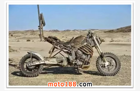從下面這些改裝車中,我們只能隱約辨識出原有品牌,對于一部世界末日題材的電影來說,末日機(jī)械美學(xué)的出現(xiàn),使得摩托車的設(shè)計(jì)達(dá)到了一個(gè)新的高度。