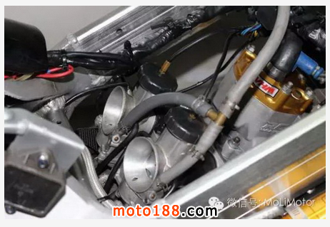 倒立式前叉.輻射卡鉗.無燈整流罩.單座.碳纖維尾管的全段加速管更貼近工廠賽車的配備。