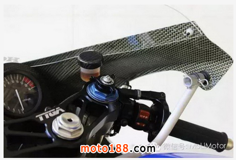 配置碳纖維輕量儀表板.三角臺也采挖孔輕量化切削制成.連煞車油壺都披上碳纖維