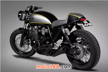 輪轂改為黑色輻條輪轂,車把降低的同時有一個向下的角度,典型的Cafe Racer車把,車尾部分改為單座加小駝峰。