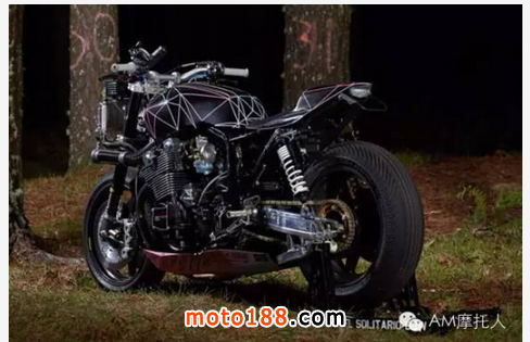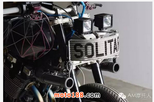 外觀涂裝方面,也一如既往的延續(xù)了El Solitario鬼馬的設(shè)計理念,來自倫敦Death Spray Custom幫忙打造了充滿未來感和立體感的不規(guī)則幾何線條的涂裝。使得整體的設(shè)計更具侵略性,果然是車如其名。