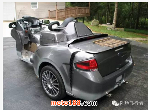 這臺合體混種三輪,最初是在eBay拍賣網(wǎng)站出現(xiàn),由一名叫g(shù)eek_jon的網(wǎng)友貼出,這輛怪車前半部是本田金翼的重型機(jī)車,后半部則是福特??怂罐I車,通過特殊土炮焊接大法連接而成,轉(zhuǎn)向部分由重型機(jī)車龍頭進(jìn)行操控,動力就由后半部Focus引擎負(fù)責(zé)輸出,成為單輪轉(zhuǎn)向、后輪驅(qū)動的三輪車設(shè)計,相當(dāng)不可思議。