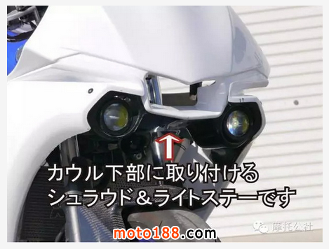 YZF-R3/R25用 R1-type外裝改裝零件包括全覆式整流罩、風擋、專用裝飾板和大燈支架等,不過PROTEC LED燈不在該套件內(nèi)。