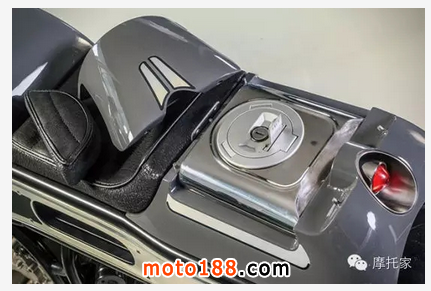 油箱口、鑰匙總成、前后燈具全設(shè)計(jì)成內(nèi)藏式。而且從手把、腳踏、座椅等等改造風(fēng)格隱約看出復(fù)古咖啡風(fēng)范。前后單搖臂的設(shè)計(jì)形式更是克魯格一貫的強(qiáng)項(xiàng)。