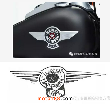 △ 這款油箱勛章是由哈雷家族的傳承者Wiliie G.親手設(shè)計的,它由五角星、USA、 HARLEY·DAVIDSON和一雙翅膀組合而成,兼具懷舊意味以及對美國文化的熱愛,是否讓你回憶起戰(zhàn)爭時代的軍用哈雷犀利的氣質(zhì)?