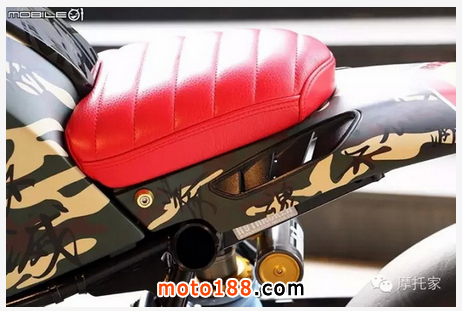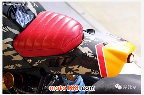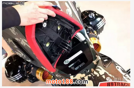 座椅采用紅色縫紉皮面增加視覺(jué)效果點(diǎn)綴,而且設(shè)計(jì)者表示能仿造原車(chē)坐墊拆卸,盡可能做到完全不破壞車(chē)體結(jié)構(gòu),可恢復(fù)原廠的方式進(jìn)行概念改裝。