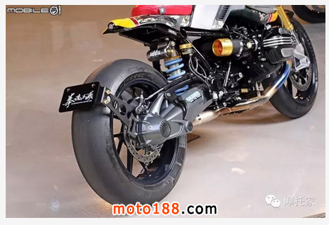 R9TRACKER 不論是從車(chē)頭或者車(chē)尾,都讓人充滿視覺(jué)震撼,尤其后輪的寬度比對(duì)起原廠 R-nineT 更是驚人??!