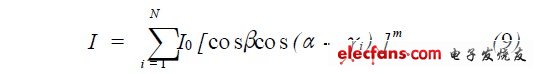 式中I 為LED 陣列的光強(qiáng); in 為第n 種型號(hào)的單個(gè)LED 光源; N 為LED 光源的個(gè)數(shù)。